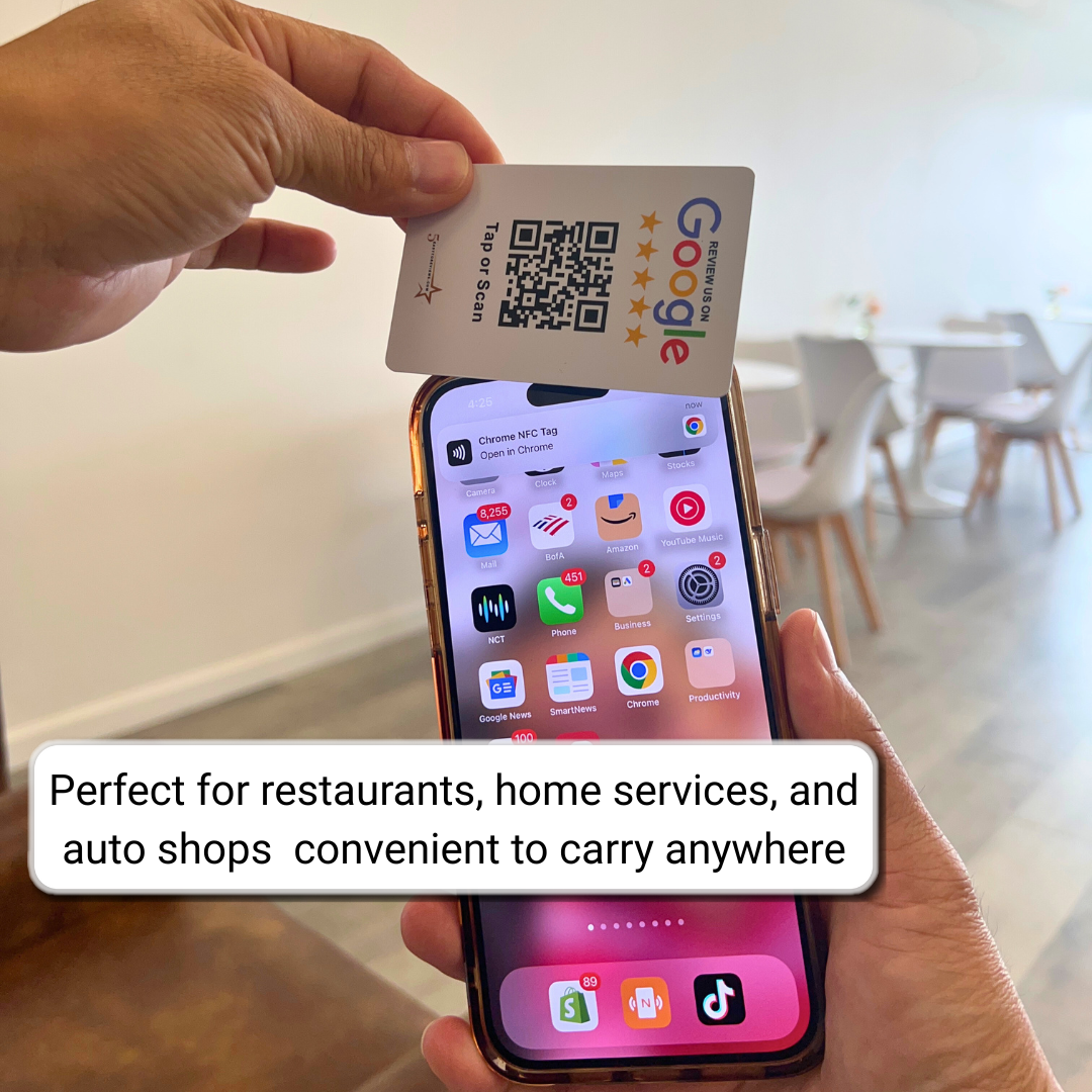 The Tap NFC Google Review Stand makes it easy to get Google reviews instantly. Customers can just tap their smartphone or scan the QR code to open the review page and share their feedback right away.