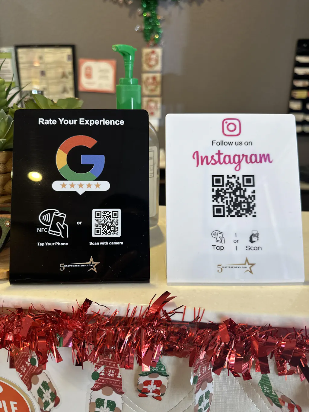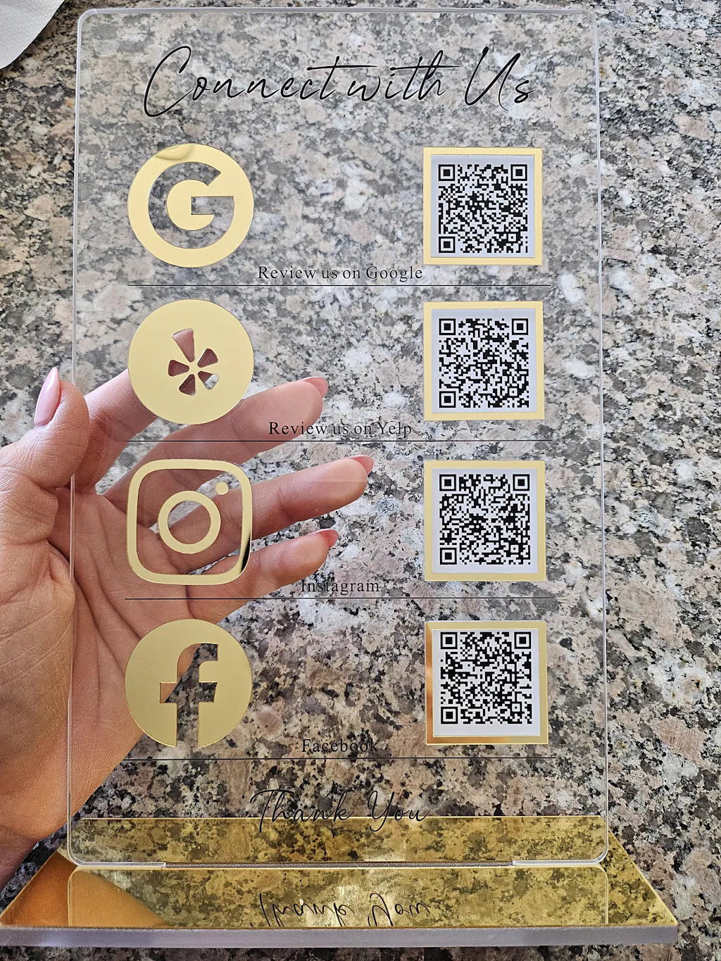 Great quality plaque! The QR codes for Google, Facebook, Yelp, and Instagram look clean and work perfectly. Super helpful for getting customer reviews and follows. Highly recommend!